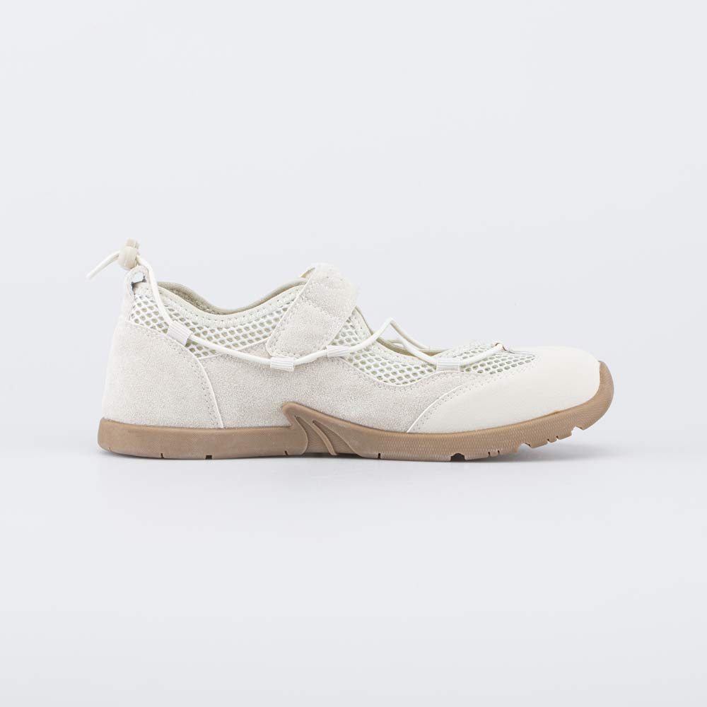 Верх изготовлен в сочетании микрофибры (искусственная кожа наивысшего качества) и вязаного текстиля, который образует сквозные отверстия для хорошей вентиляции стоп. Округлый носок позволяет пальчикам свободно двигаться.
