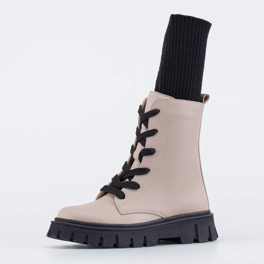 Сапожки на молнии дополнены шнурками, которые дают возможность отрегулировать модель по подъему стопы.