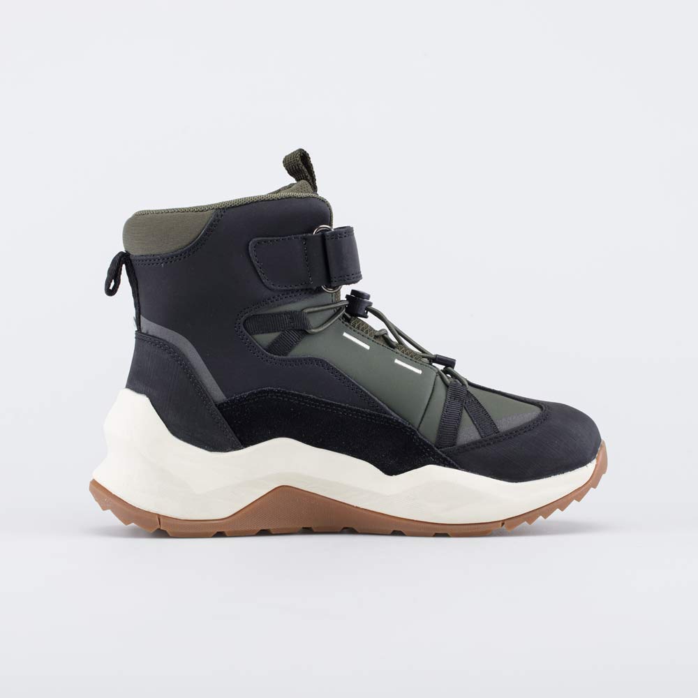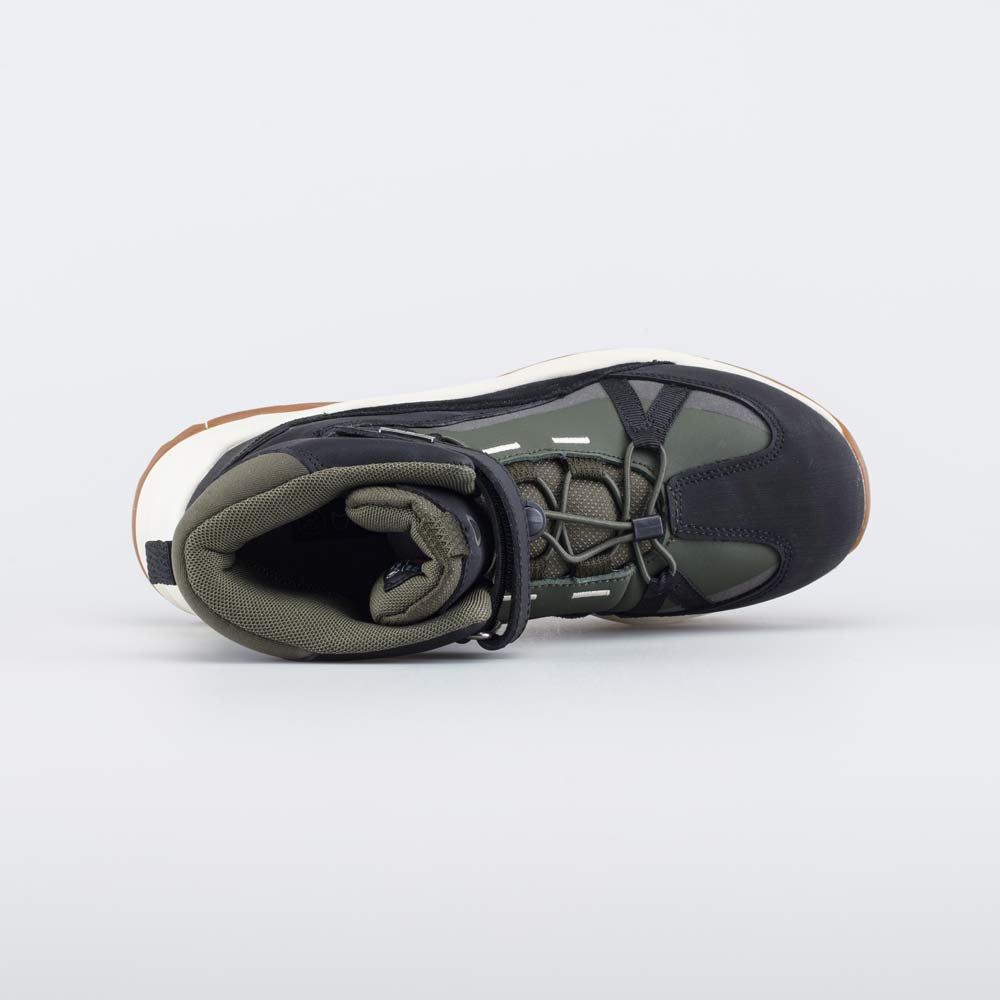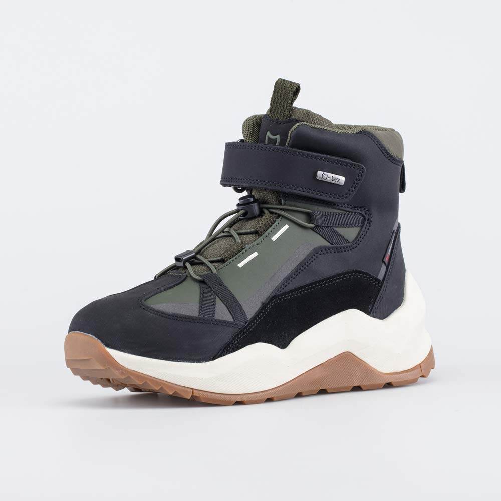 Демисезонные высокие ботинки с ультрасовременным утеплителем Тинсулейт подходят для мальчика-подростка. Выполнены в стильном сочетании двух цветов: оливкового и черного.
