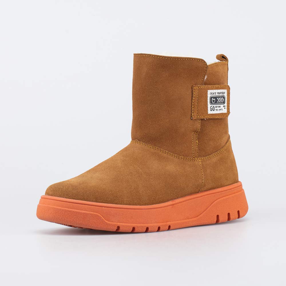 Удобные зимние сапожки для девочки выполнены в трендовом кирпичном цвете.
