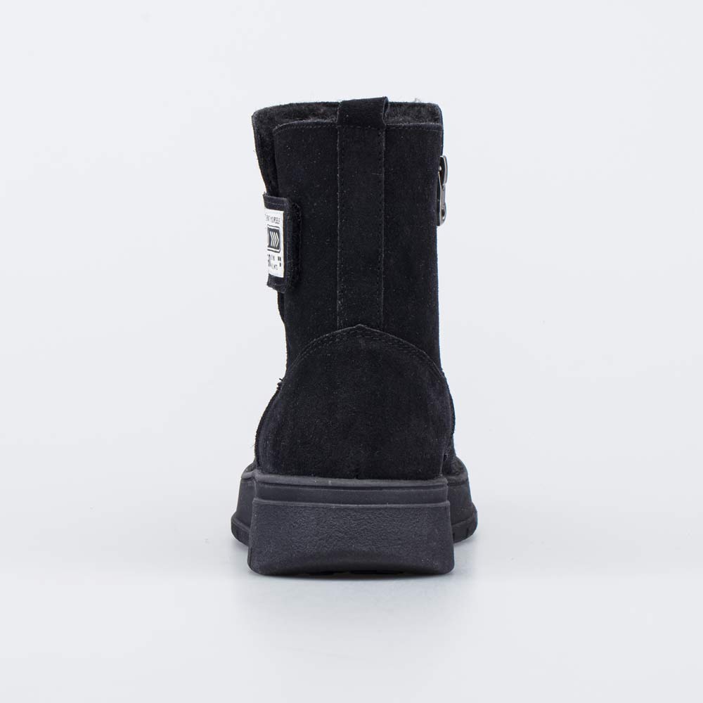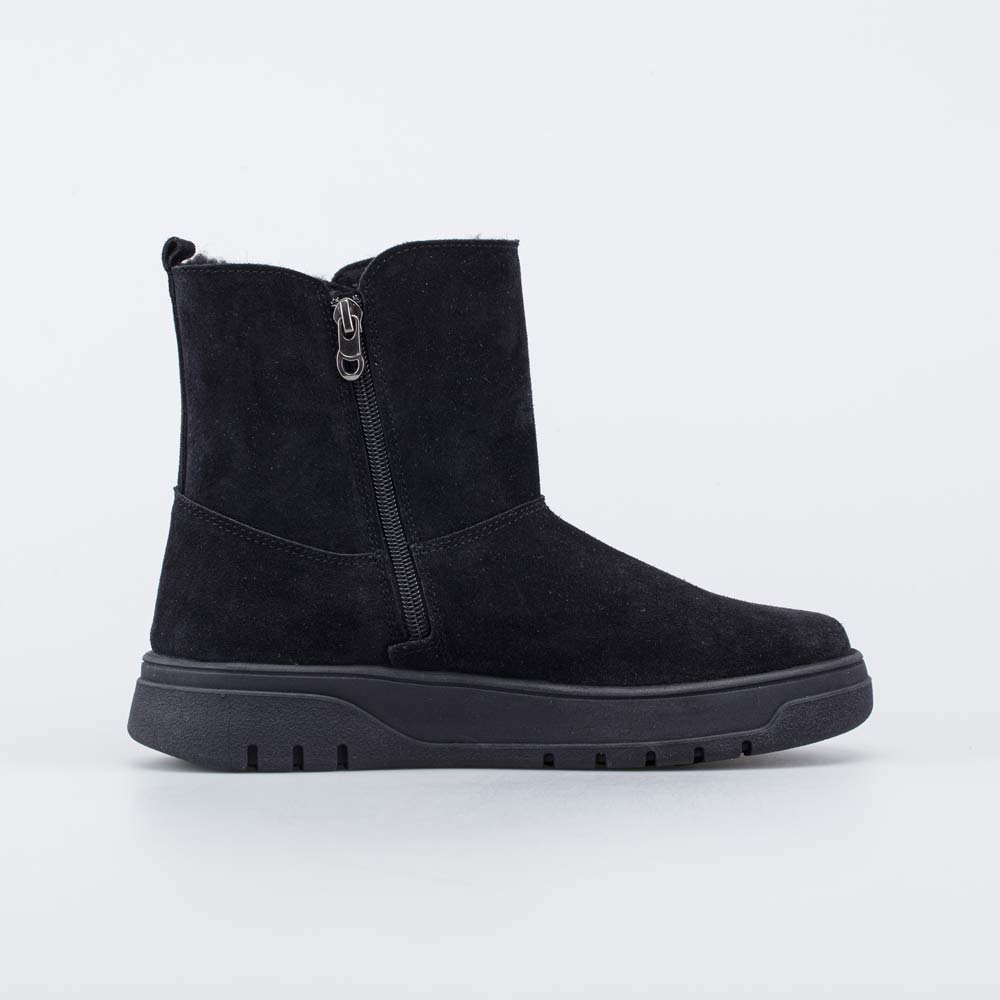 Удобные зимние сапожки на молнии выполнены в универсальном черном цвете.