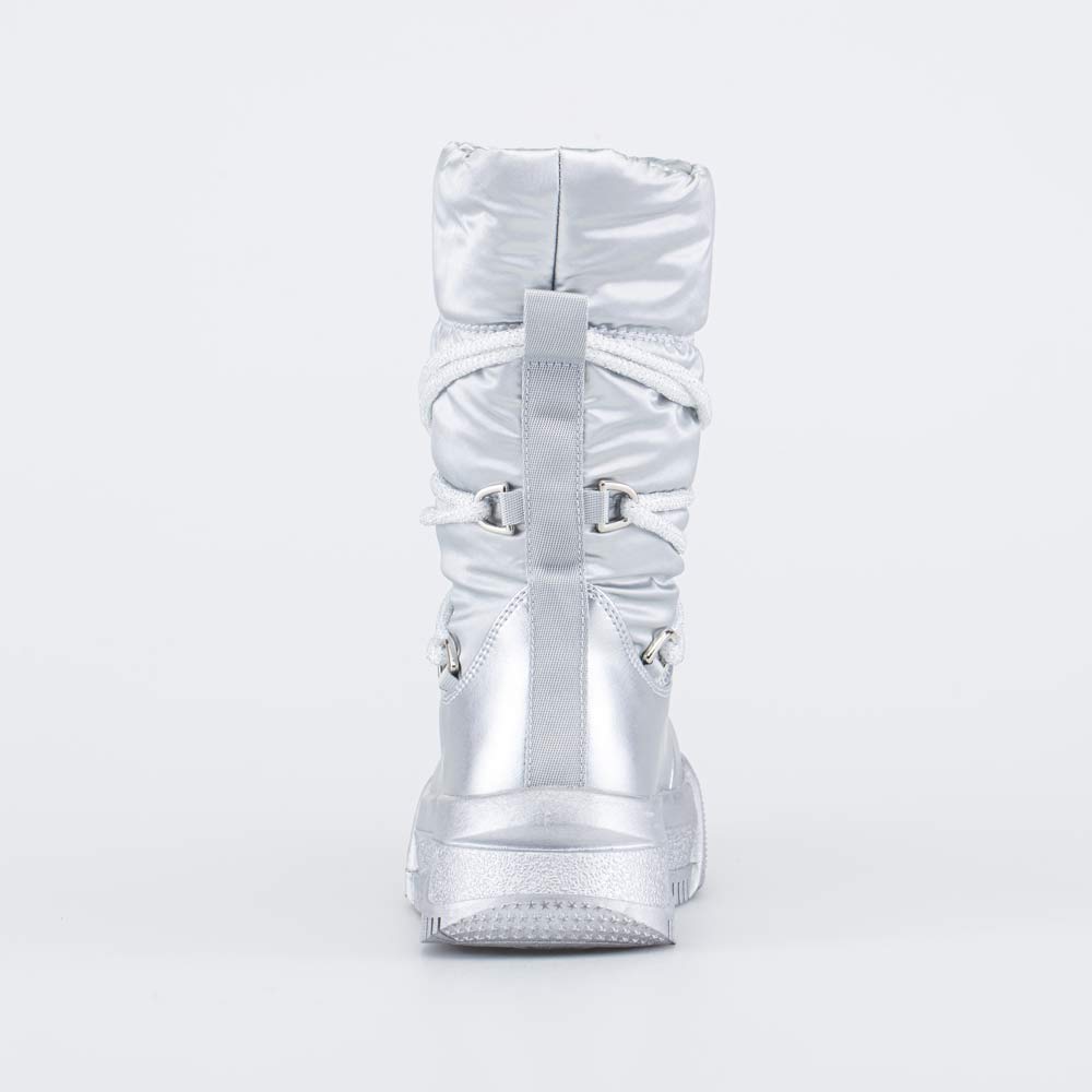 Зимние сапожки-дутики серебристого цвета подходят для девочки-подростка.