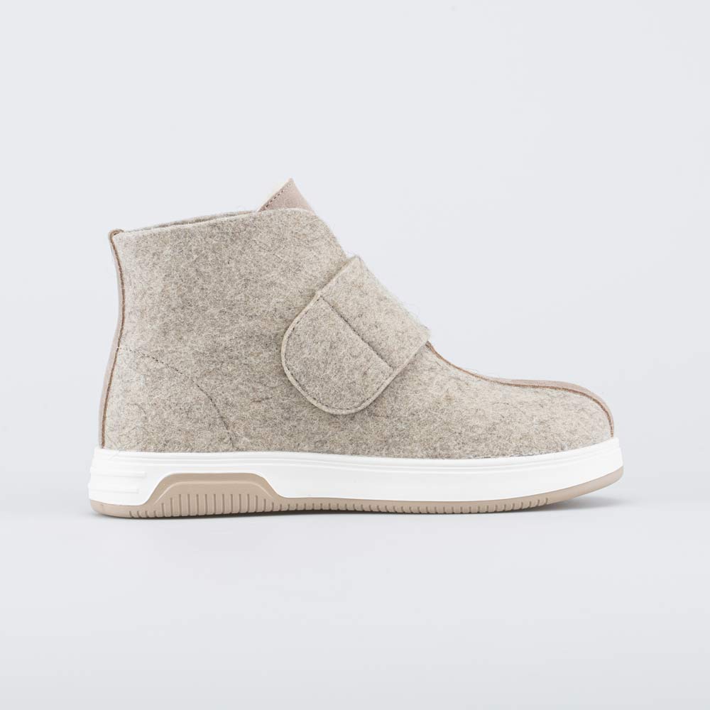 Отсутствие меховой подкладки делает модель особенно подходящей для тех, кто часто заходит с улицы в помещение или передвигается на автомобиле. Кроме того, контакт с натуральным войлоком дарит стопам целебное сухое тепло и массажный эффект, улучшающий кровообращение. Войлочная стелька снабжена петелькой, чтобы легко вынимать ее для проветривания.