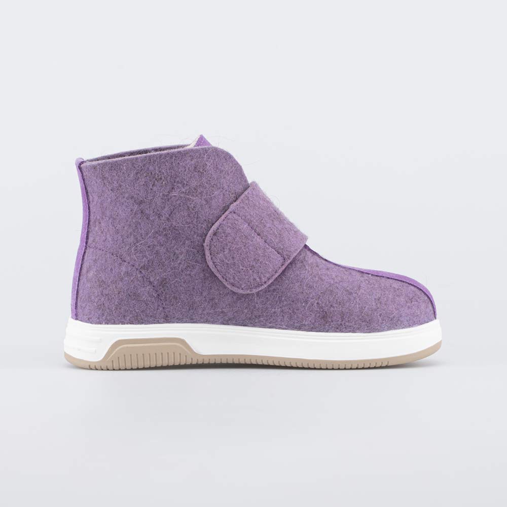 Отсутствие меховой подкладки делает модель особенно подходящей для тех, кто часто заходит с улицы в помещение или передвигается на автомобиле. Кроме того, контакт с натуральным войлоком дарит стопам целебное сухое тепло и массажный эффект, улучшающий кровообращение. Войлочная стелька снабжена петелькой, чтобы легко вынимать ее для проветривания.