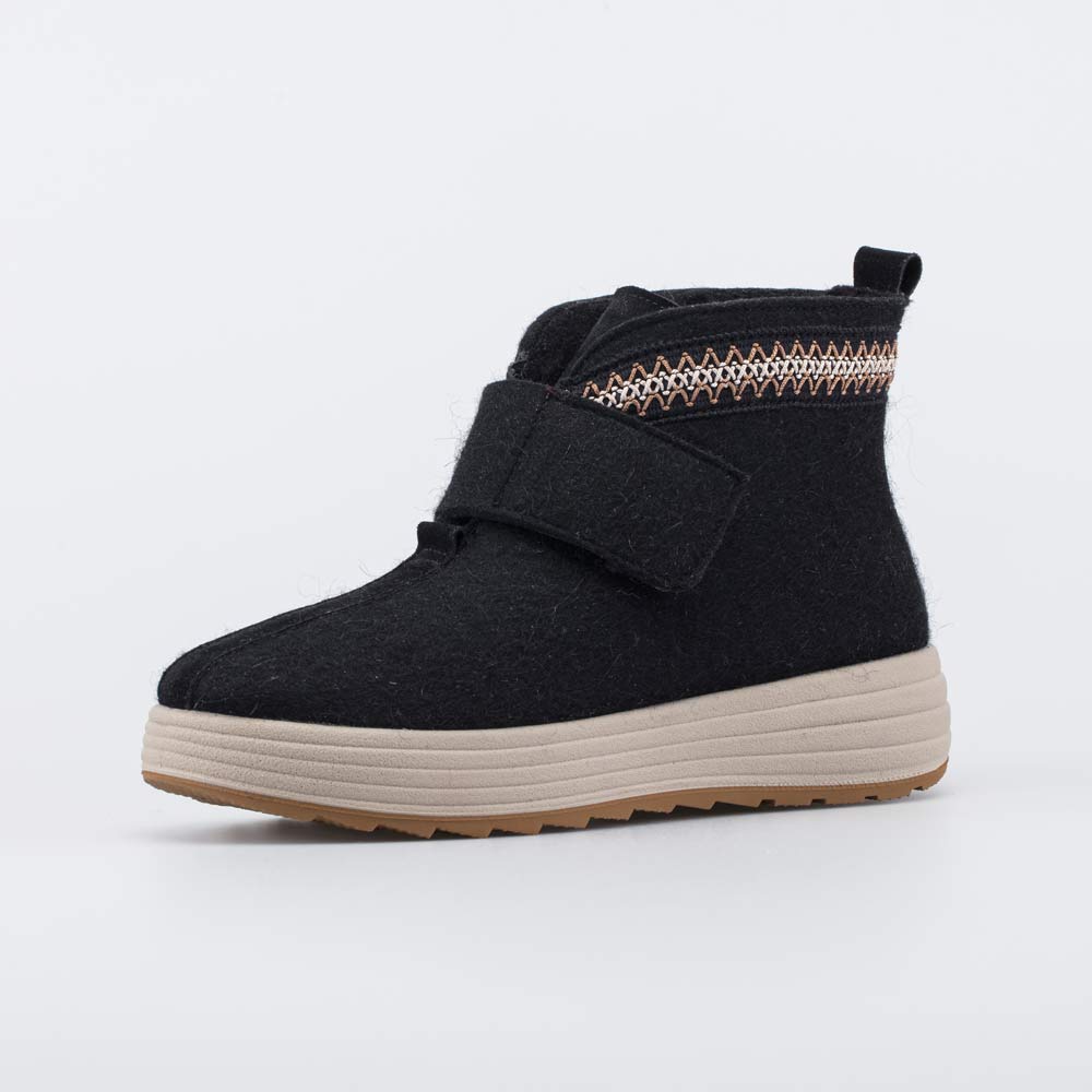 Войлок плотный, с водоотталкивающими свойствами. Он надежно сохраняет тепло, дышит и создаёт приятный микроклимат вокруг стопы. Украшение в виде декоративной тесьмы придает модели выразительности.