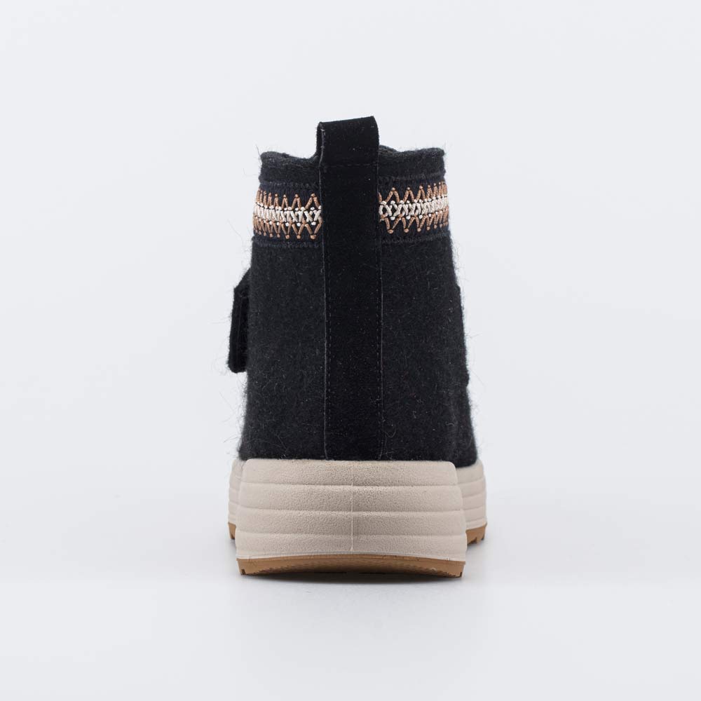 Эти теплые валенки имеют подкладку из шерстяного меха и войлочную стельку. Она снабжена петелькой, чтобы легко вынимать ее для проветривания.