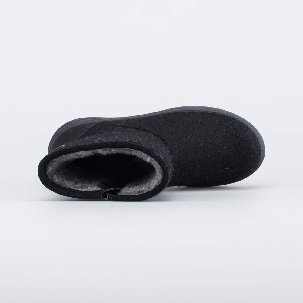 Плотный войлок надежно сохраняет тепло, обладает влагоотталкивающими свойствами, дышит и создаёт приятный микроклимат вокруг стопы. Пяточная часть защищена от влаги и реагентов кожаной накладкой с ПУ-покрытием, что особенно важно для автоледи.