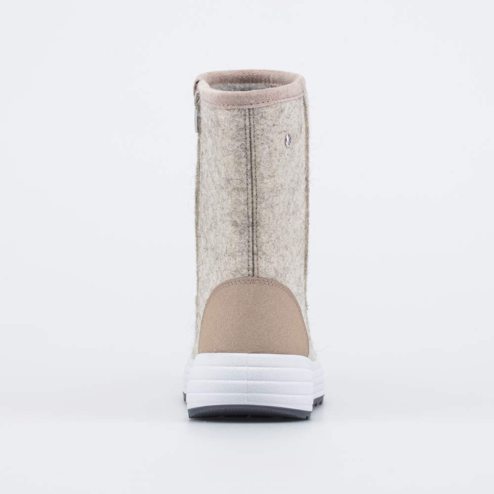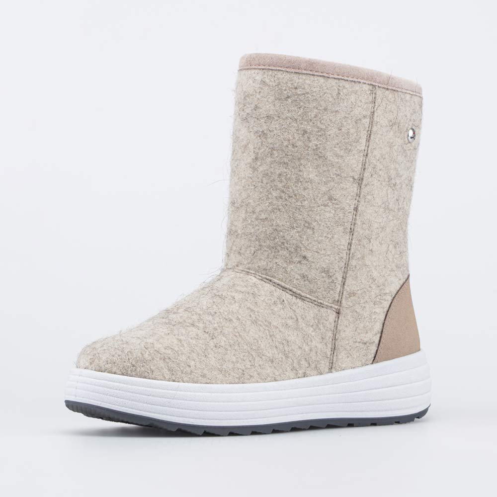 Плотный войлок надежно сохраняет тепло, обладает влагоотталкивающими свойствами, дышит и создаёт приятный микроклимат вокруг стопы. Пяточная часть защищена от влаги и реагентов кожаной накладкой с ПУ-покрытием, что особенно важно для автоледи.