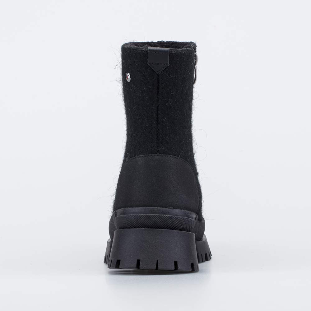 Дополнительную теплоизоляцию обеспечивает подкладка из шерстяного меха – в такой зимней обуви комфортно даже в сильные морозы. Войлочная стелька снабжена петелькой, чтобы легко вынимать ее для проветривания.