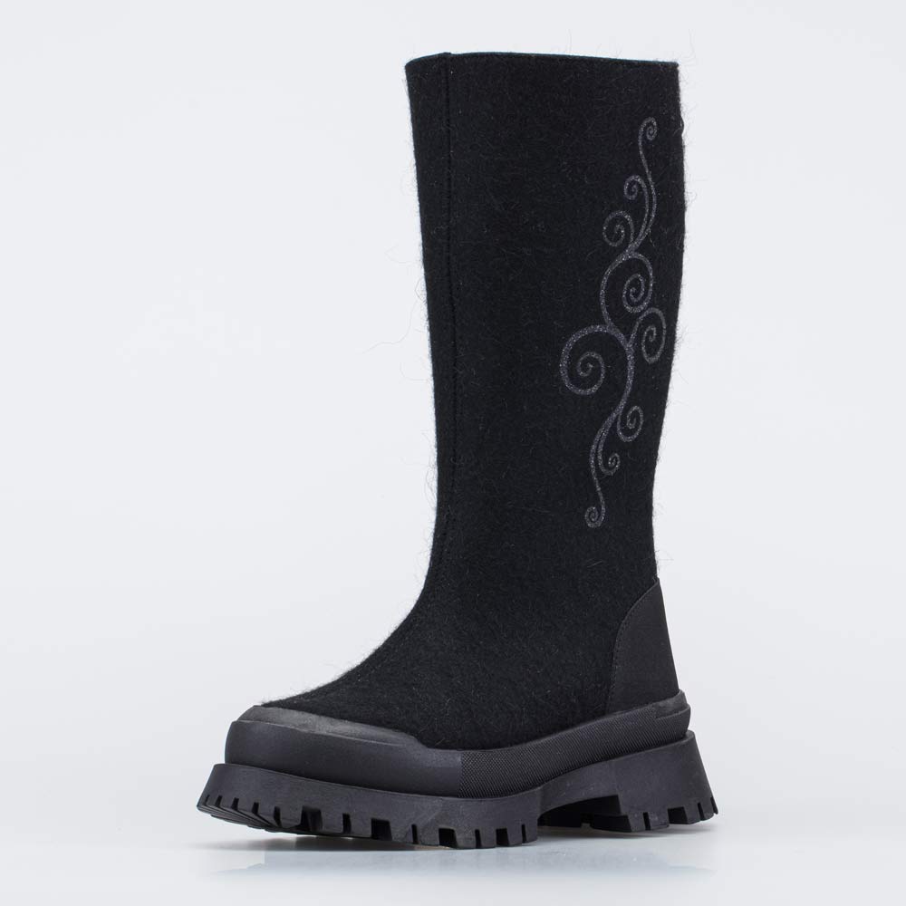 Женские валенки на подошве, украшенные узором из глиттера, сочетают в себе комфорт натуральных материалов и современный стиль.