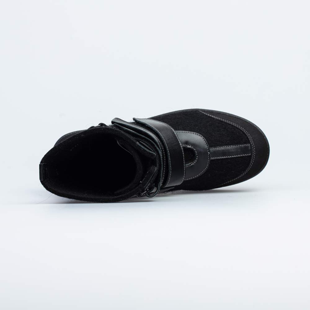 Брутальные мужские валенки черного цвета выполнены в стиле высоких войлочных ботинок.