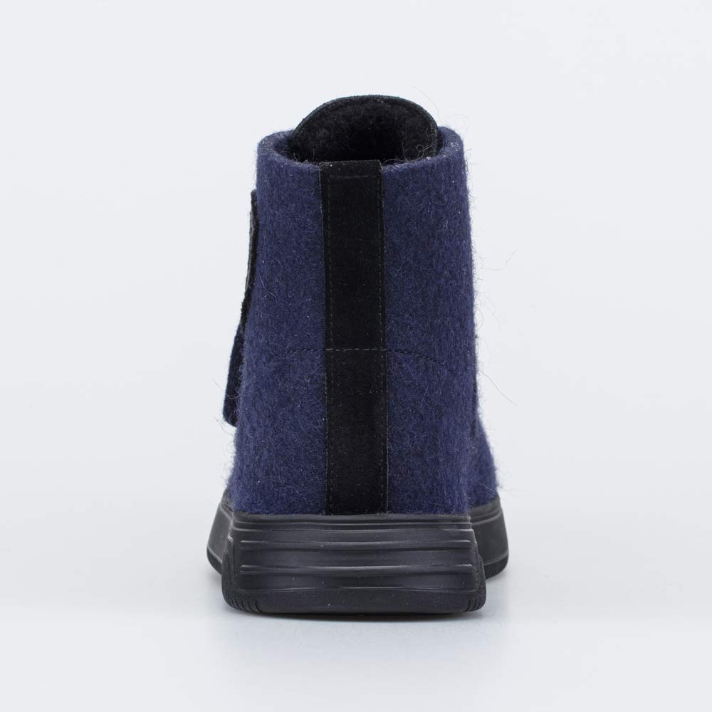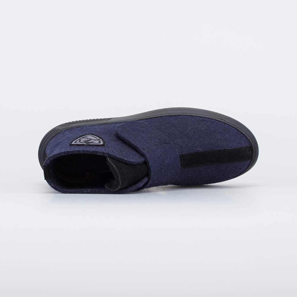 Верх этих темно-синих валенок изготовлен из плотного и дышащего натурального войлока. Он дарит стопам целебное сухое тепло и оказывает массажный эффект, улучшая кровообращение.