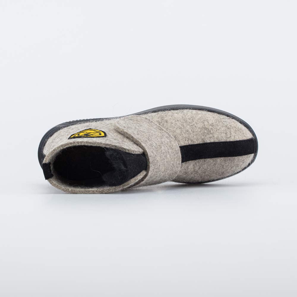 Верх этих бежевых валенок изготовлен из плотного и дышащего натурального войлока. Он дарит стопам целебное сухое тепло и оказывает массажный эффект, улучшая кровообращение.
