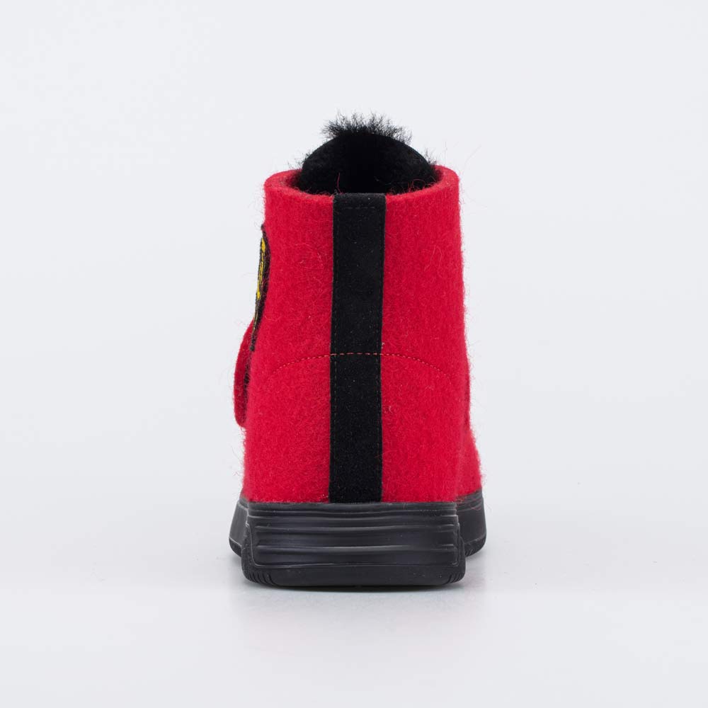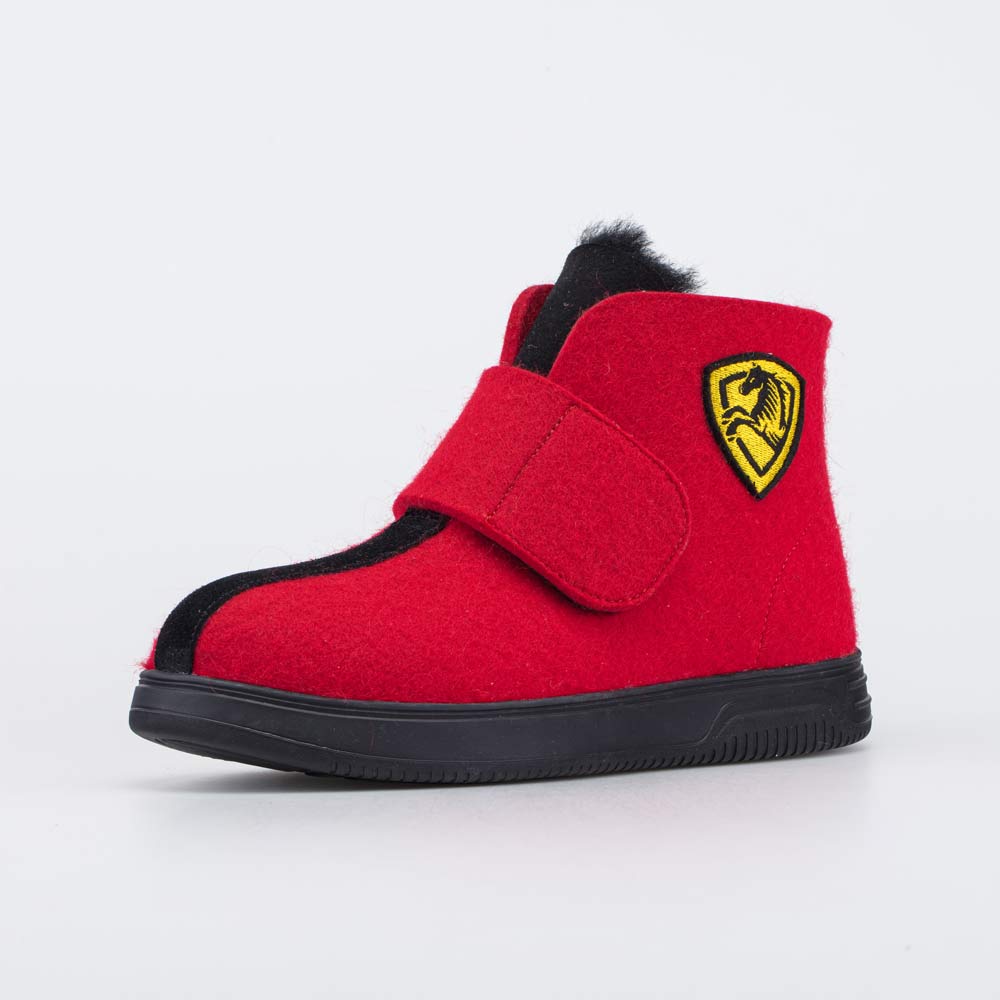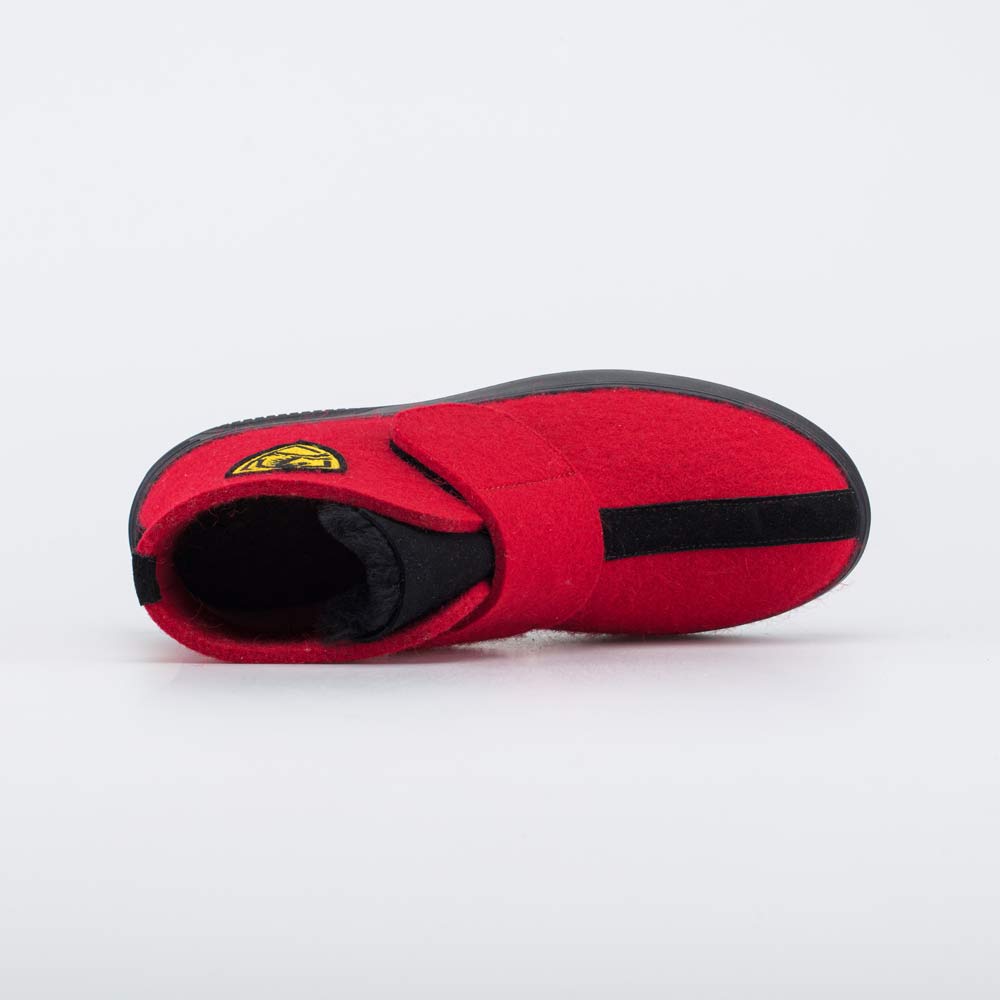 Верх этих красных валенок изготовлен из плотного и дышащего натурального войлока. Он дарит стопам целебное сухое тепло и оказывает массажный эффект, улучшая кровообращение.