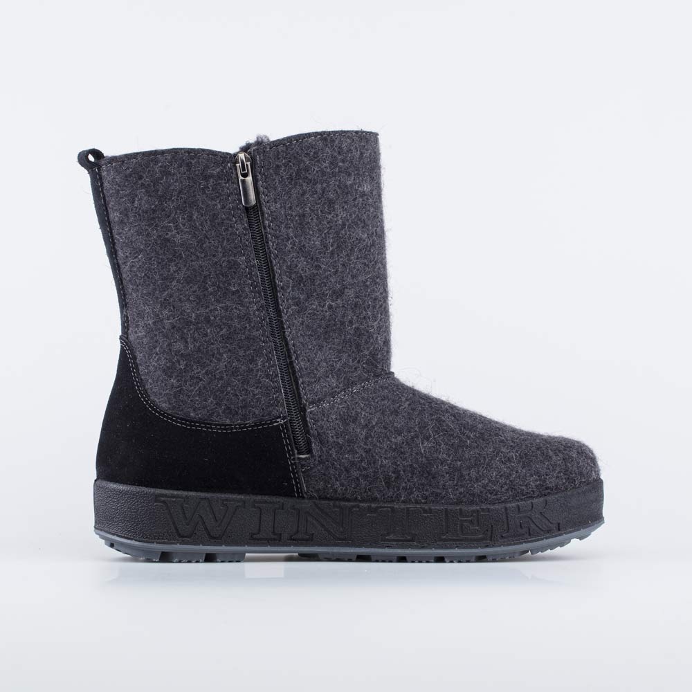 Эти теплые валенки имеют подкладку из шерстяного меха, которая обеспечивает дополнительную теплоизоляцию и комфорт даже в сильные морозы. Войлочная стелька снабжена петелькой, чтобы легко вынимать ее для проветривания.