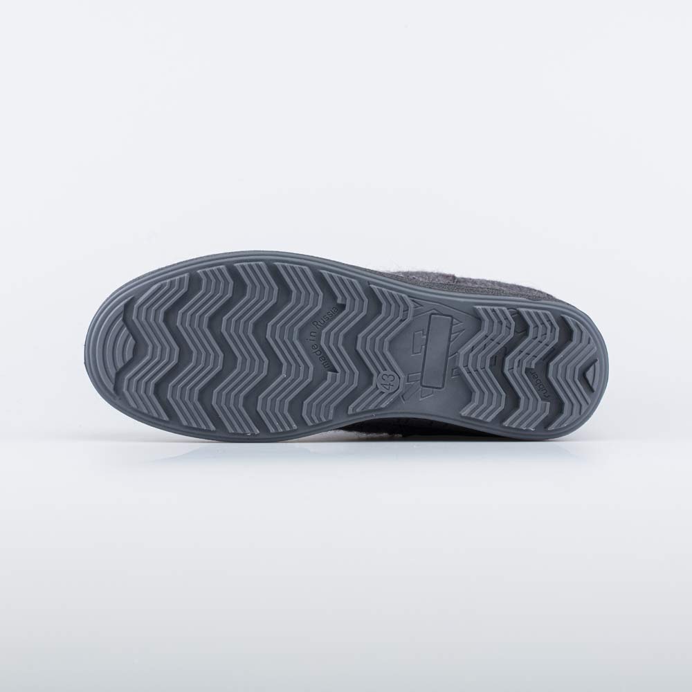 Войлок плотный, с водоотталкивающими свойствами. Он надежно сохраняет тепло, дышит и создаёт приятный микроклимат вокруг стопы. Кожаная накладка защищает пяточную часть от влаги и грязи, что особенно актуально для автомобилистов.