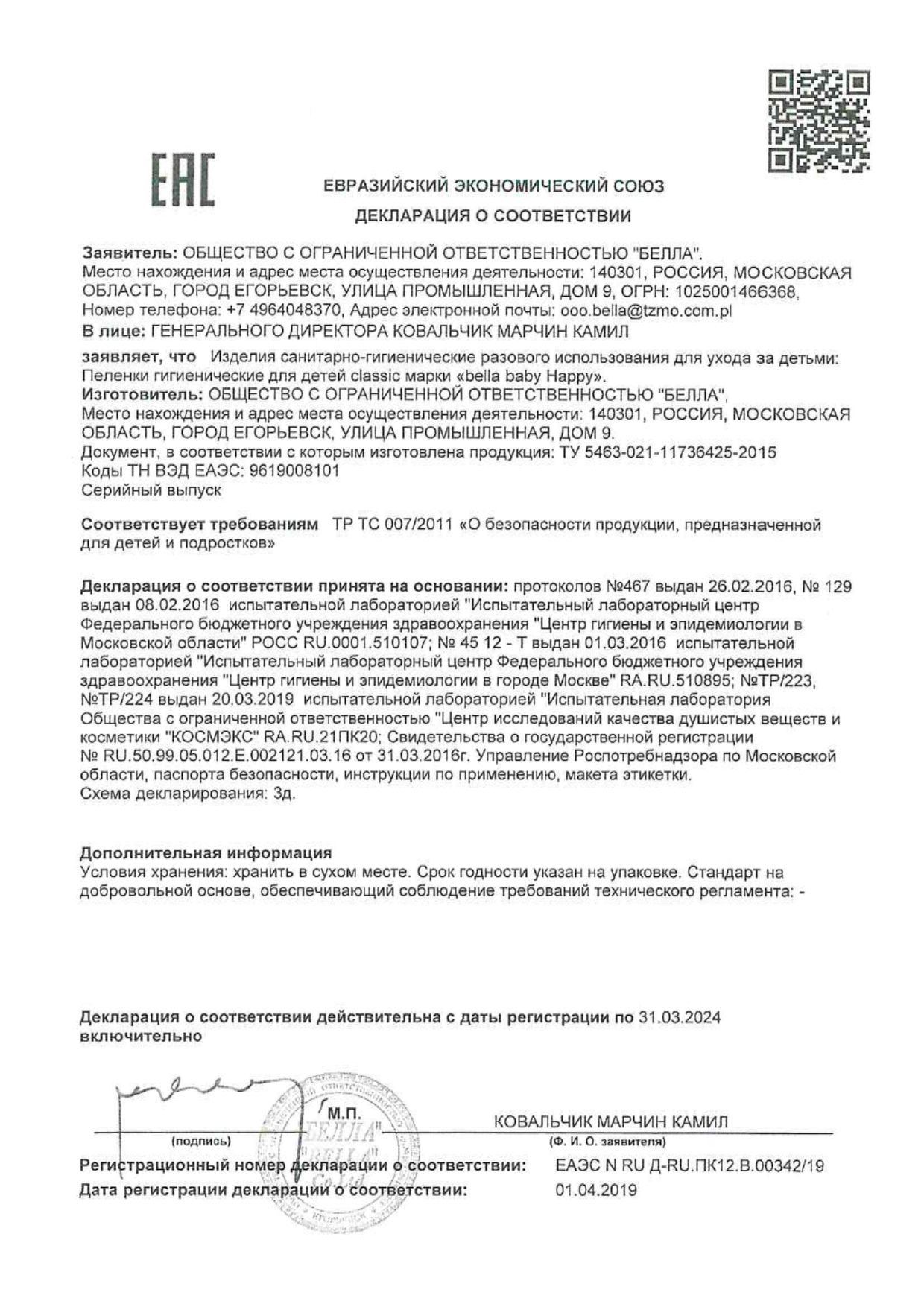 Одноразовые пелёнки для детей BELLA baby Happy classic 60 х 60/30 шт.